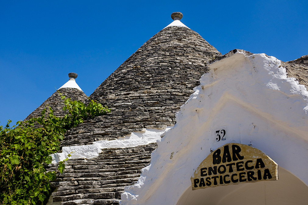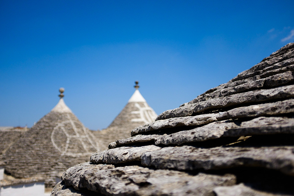 The Trulli houses are typical constructions from this region of Italy. Build with stones in this iconic shape, the Trullo’s stone was able in the past century to isolate the house from the summer heat and give back some it during the winter time.